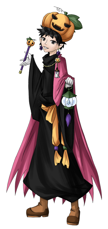 普段着の上にマント・手袋・カボチャを被るだけで、出来るだけ本格的に。